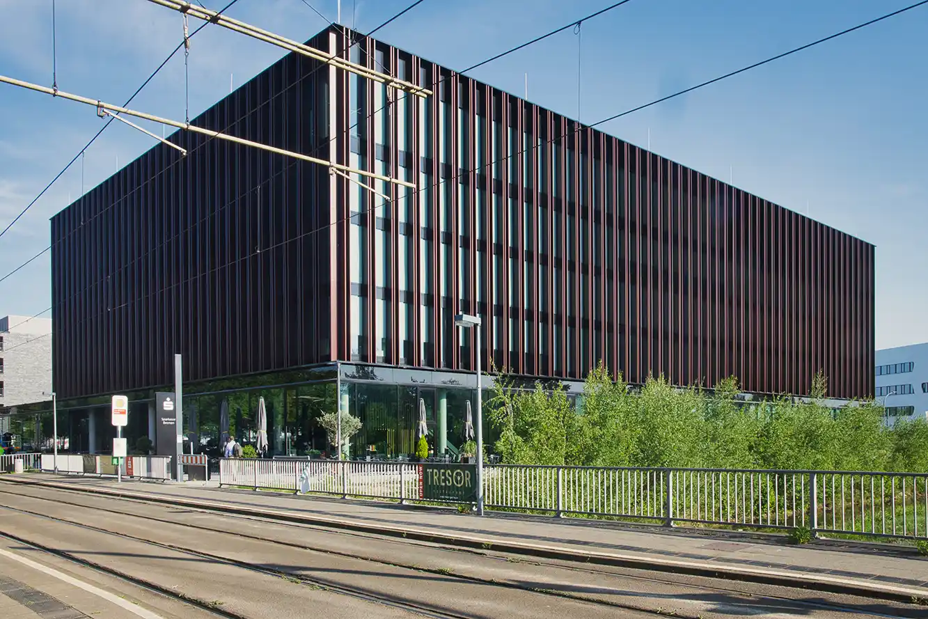 Eingesetzt wurden DELTA-beams (Fa. PEIKKO) mit Deckenspannweiten von rund 13 Metern. Ziel des Projekts war die DGNB-Zertifizierung in Platin. Das Energiekonzept umfasst Geothermie, Betonkernaktivierung der Decken und Photovoltaik. Die Integration der Betonkernaktivierung erforderte eine enge Abstimmung mit den TGA-Planern und ausführenden Firmen. Aufgrund einer erforderlichen intensiven Wasserhaltung wurde die Höhe von Untergeschoss und Bodenplatte optimiert. Zwischen Projektstart und Beginn des Rohbaus standen nur zehn Monate Planungszeit zur Verfügung.
