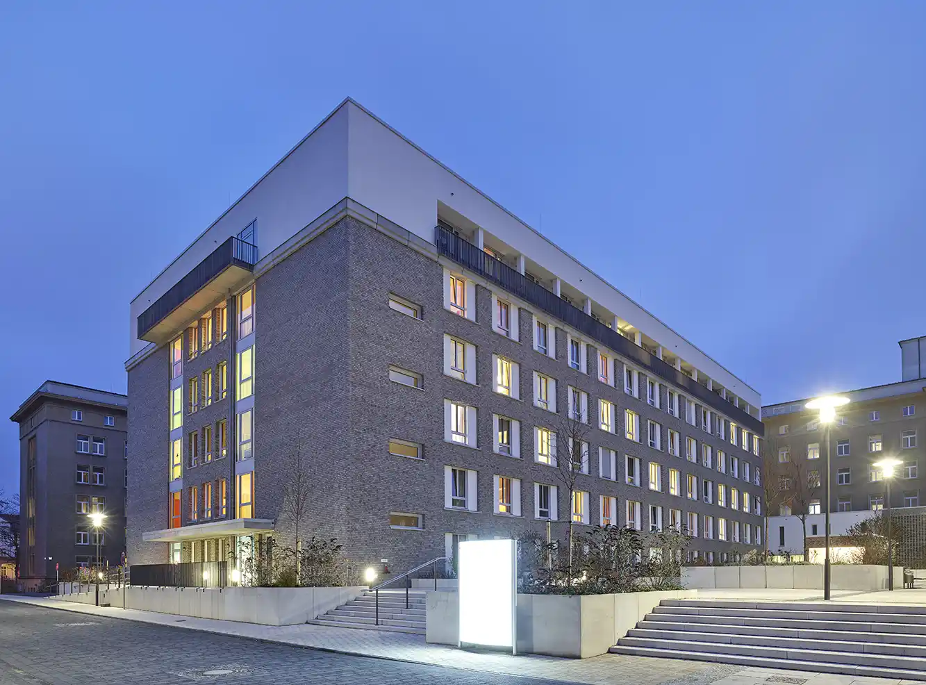 Im Rahmen der Neustrukturierung des Vivantes Klinikums in Berlin entstand ein 6-geschossiger Stahlbetonskelettbau mit zwei Untergeschossen in wasserundurchlässiger Bauweise. Im Innenhof wurde eine 2-geschossige Tiefgarage realisiert. Unsere Leistungen umfassten die Tragwerksplanung sowie den Wärmeschutz und bautechnischen Brandschutz.