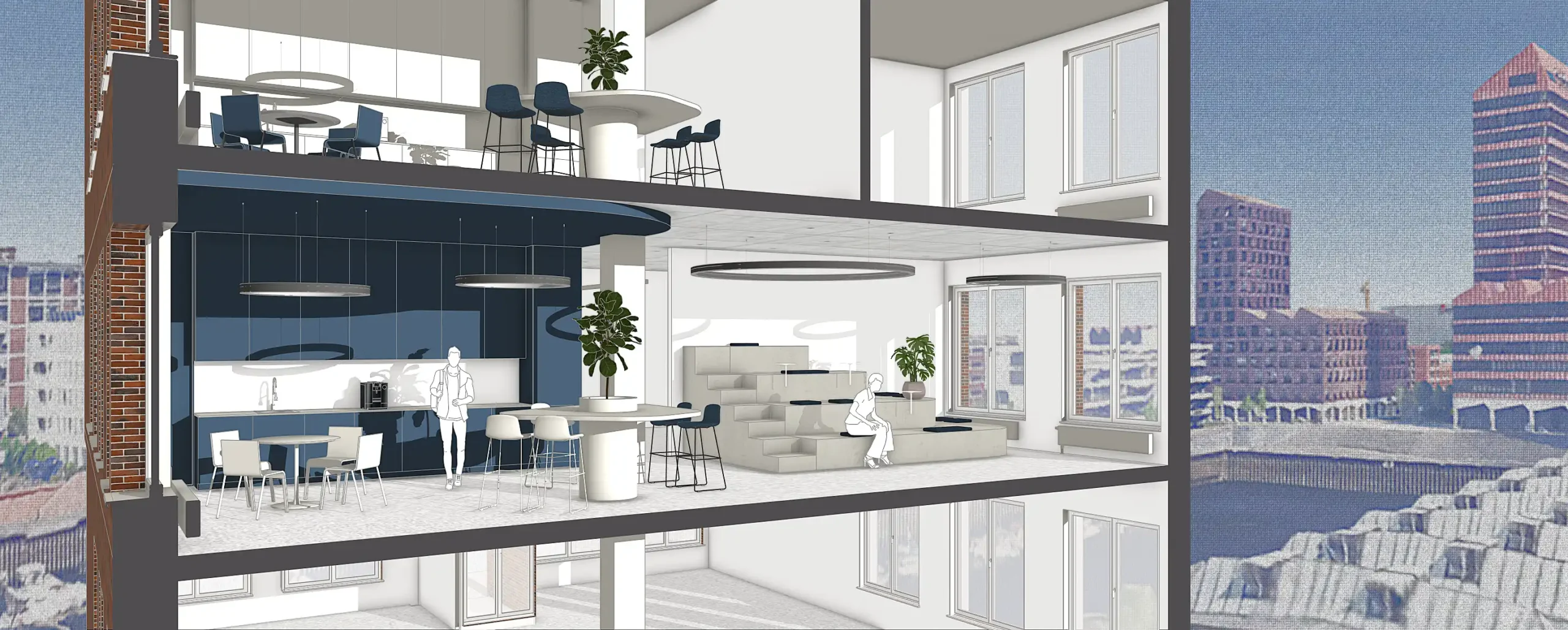 Mit dem Umzug entsteht nicht nur ein moderner Arbeitsplatz mit Wasserblick, sondern vor allem ein gemeinsamer Ort für über 70 Mitarbeitende, die bislang auf zwei Standorte verteilt waren. Die neue Fläche wird vollständig durch das unternehmenseigene Architektenteam geplant und auf die Anforderungen der eigenen Teams und die Arbeitsweise eines interdisziplinären Planungsbüros abgestimmt.